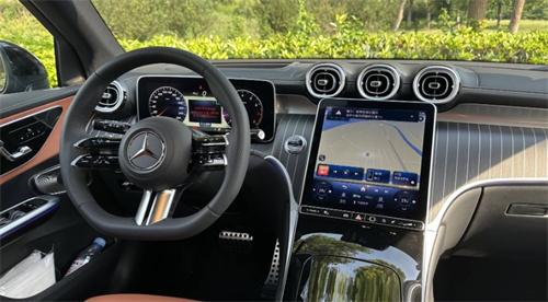 與之前試駕的奔馳EQE SUV相似,全新長軸距GLC的中控大屏采用零層級界面的菜單設計。車輛啟動后,屏幕上直接顯示地圖和空調信息,其他常用的車輛功能幾乎可以一次操作找到。屏幕下方仍保留一排物理按鍵,用于切換駕駛模式、打開攝像頭和調節多媒體音量。此外,如果駕駛員對車輛不熟悉,還可以通過語音助手控制部分車輛功能,如設置導航目的地或調節空調溫度。