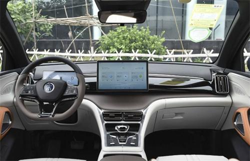 進入車內,新車的中控臺設計寬厚厚重,懸浮式的大尺寸液晶儀表和中央的大尺寸中控屏增添了科技氛圍。寬厚的黑色烤漆飾板連接著兩側的空調出風口,增加了視覺寬度。檔位區域采用了游艇式的檔把和保留的物理按鍵設計,操作方便且手感出色。座椅非常厚重,并且車內大面積采用軟質材料包裹,柔軟的觸感提升了車輛的品質感。