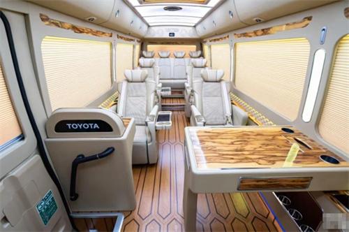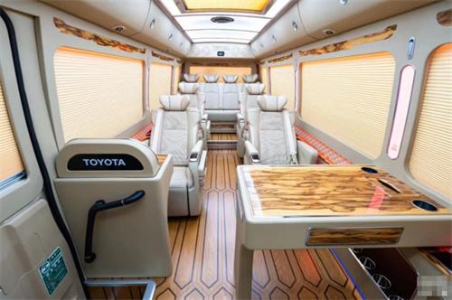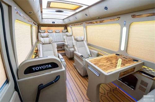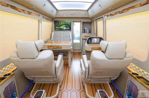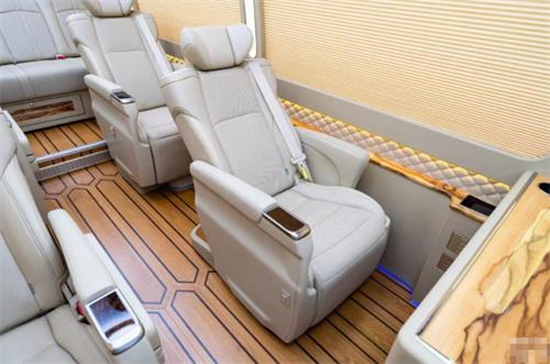 考斯特改裝車型采用真皮航空座椅,可進行360度旋轉和電動調節(jié),乘客可以自由調整舒適的空間距離、靠背角度和腳托角度。寬敞的空間讓乘客享受舒適的乘坐體驗。專業(yè)的座椅構造增加了腰部支撐,有效緩解旅途疲勞。外觀方面,考斯特改裝車型采用中空隔熱隱私玻璃,并裝飾有鍍鉻和鍍金標志,展現出奢華與品味。