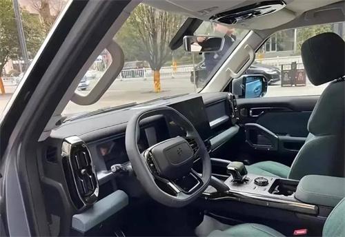 內(nèi)飾方面,新車的中控區(qū)域采用了T型平直布局,方形方向盤搭配仿麂皮材質(zhì)座椅和水晶擋把等高級配置,增添了硬漢SUV的氣息。此外,新車還配備了15.6英寸中控屏和10.25英寸儀表屏,提升了駕駛科技感。