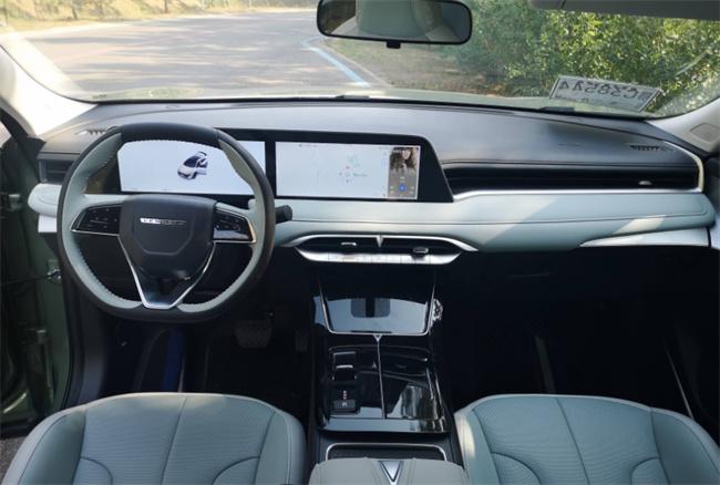 內飾設計與燃油版相似,僅對座椅縫線進行了改進,并新增了配色方案。最引人注目的是采用了24英寸一體式雙聯屏設計,搭載啟辰V-Link智聯系統,提供智能語音交互、在線導航、車聯網、OTA升級等功能。值得一提的是,啟辰大V DD-i超混動取消了一鍵啟動開關,而是通過主駕座椅ODS功能,只要帶著鑰匙進入車內,車輛就會自動通電。駕駛者只需踩下剎車并掛擋,就可以出發了。到達目的地后,掛入P檔,帶著鑰匙下車即可。