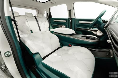 首先,我們來看云朵的座椅設計。云朵首創了“云朵沙發”座椅,將高定沙發的概念引入了乘員艙內,追求提供回家般的舒適體驗。座椅采用柔軟皮革包裹,并以輕盈柔軟的云朵為靈感,采用36片"云朵"裁片縫制皮套,工藝水平高,整體造型精美,給人一種賞心悅目的感覺。