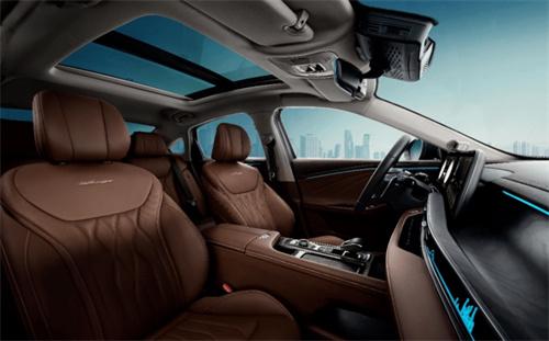 進(jìn)入車內(nèi),新車延續(xù)了現(xiàn)款車型的設(shè)計(jì)風(fēng)格,整體采用棕色內(nèi)飾風(fēng)格,座椅采用Nappa皮質(zhì)包裹,并加入黑胡桃木內(nèi)飾元素,凸顯高級(jí)感。車輛配備了24.6英寸懸浮式雙聯(lián)屏,搭載8155芯片,支持自然語(yǔ)音交互、在線實(shí)時(shí)導(dǎo)航、OTA遠(yuǎn)程升級(jí)、無(wú)線Carplay、無(wú)線HiCar等功能。高配車型還將配備AR導(dǎo)航、手勢(shì)識(shí)別、人臉識(shí)別、疲勞監(jiān)測(cè)、前排乘員監(jiān)測(cè)等智能功能。