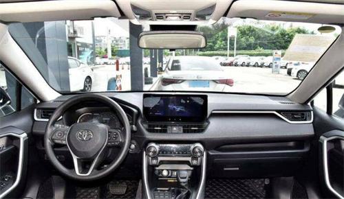 進入RAV4榮放的車內,中控臺整體布局符合豐田一貫的實用主義風格。臺面采用疊層化設計,覆蓋有鍍鉻飾條進行封邊,中央懸浮式中控屏是亮點。儀表區采用傳統的機械指針結合彩色屏幕的組合。全系配備了10.25英寸中控屏,集成了豐田最新的智能連接系統,藍黑色的UI主題風格簡約清晰,支持CarPlay、CarLife和Hicar手機互聯映射功能。除了基礎款車型外,其他版本還配備了內置GPS和多媒體功能,并搭載了車聯網和4G網絡,提供更多應用擴展和實時在線服務。