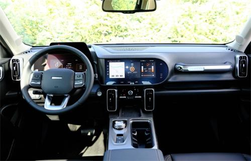 內飾方面基本與老款一致,整體設計非常獨特,尤其是副駕前方的把手以及儀表盤的設計非常突出。車輛整體采用矩形設計,增加了獨特感。此外,新車還配備了全液晶儀表盤和三輻式多功能方向盤。中控中央采用了內嵌式的多媒體顯示屏,中央過道區域還配備了旋鈕式的電子換擋機構,營造出了不錯的科技感。