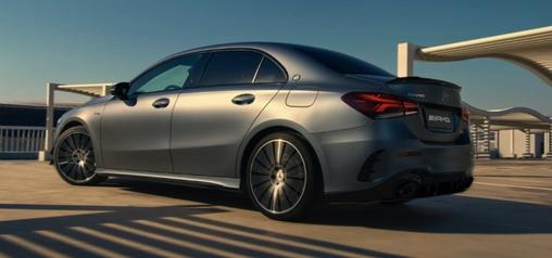 奔馳A35L在外觀設計上采用了飛翼式單根條幅中網,左側鑲嵌AMG字樣,凸顯出其非凡的性能特質。盡管前保險杠造型相對保守,與普通A-Class差別不大,但在尾部,大尺寸的定風翼和夸張的雙邊雙出排氣系統使其呈現出更加運動化的氣息。