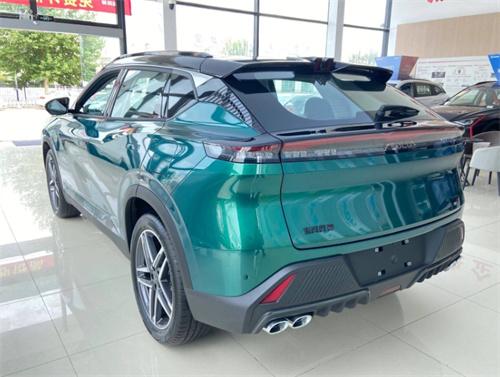 車身側面的線條勾勒出機甲感,同時提供了駭客綠、科幻銀、紳墨藍等五種車色以及懸浮式車頂、隱藏式門把手和雙五輻星芒輪轂,融合了運動感和時尚感。車身尺寸為4650毫米長、1905毫米寬、1630毫米高,軸距為2775毫米,在同級別車型中屬于較大的一類。尾部的貫穿式尾燈設計引人注目,分段式的鏤空擾流板搭配運動套件的下包圍進一步提升了整體攻擊性。