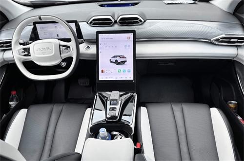 車內采用黑白雙色環抱式座艙設計,大量使用皮質包覆,配以鍍鉻飾條和拉絲面板,營造出豪華氛圍。方向盤為雙色雙輻式,搭配水晶式撥桿換擋,凸顯出高檔感。方向盤上還配有"S"按鈕,用于進入運動模式。車內還設有一體式座椅,可隨時體驗6秒級加速的激情。中控臺配備了13.2英寸瀑布式中控屏和10.25英寸全液晶儀表,充滿了科技感。