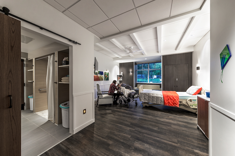 位于伊利諾伊州皮奧里亞的22,000平方英尺,12間臥室的Almost Home Kids工廠為患有復雜健康狀況的兒童提供過渡性護理。圖像:Ballogg攝影