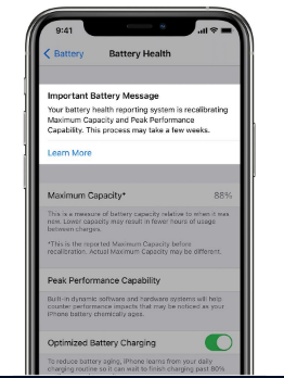 Apple解釋說,根據重新校準過程的結果,您應該在屏幕上看到不同的消息。例如,如果確定電池的健康狀況已大大下降,則應該看到一條警告,提示您的iPhone需要維修。