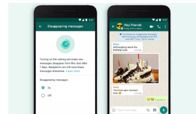 該功能本身非常簡單。一旦在群組聊天或個人聊天中打開,此后發送的所有消息都將在7天后從電話和服務器端的聊天中刪除。WhatsApp特別選擇了7天作為時間段,從而使用戶有一定的時間記住消息,而不會永久保存。WhatsApp可能會選擇在將來添加更多時間段。