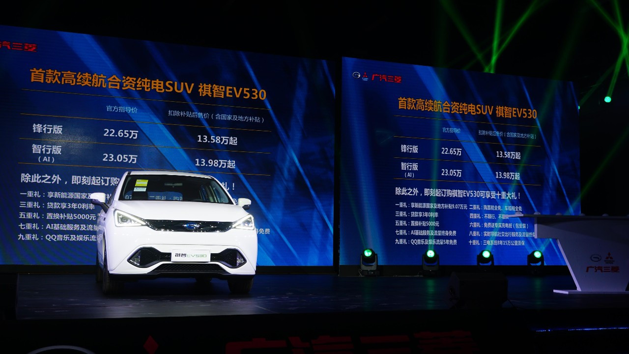 10月13日,廣汽三菱首款純電動SUV車型——祺智EV530正式上市。祺智EV530定位為一臺純電動小型SUV,將推出鋒行版和智行版共推出2款車型,官方指導價為22.65萬元和23.05萬元,補貼后售價為13.58萬元和13.98萬元。