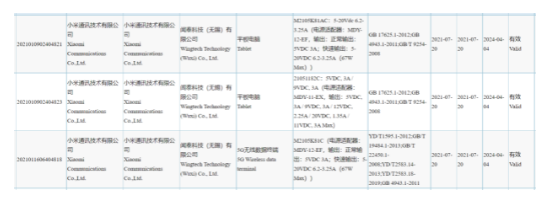 可以看出,3C權(quán)威已經(jīng)批準(zhǔn)了三款型號(hào)為M210581AC、21051182C和M201581C的小米平板。從截圖中可以看出,K81A 和 K81C 型號(hào)很可能配備 67W 充電器。兩款機(jī)型中,似乎只有 K81C 支持 5G 連接。
