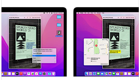實時文本掃描照片中的文本以使其具有交互性,允許您復制文本甚至從突出顯示的號碼撥打電話。它是 M1 獨有的產品之一,但最新版本的macOS Monterey 文檔現在表示它將在所有支持 macOS Monterey 的 Mac 上可用。根據 Apple 自己的承諾,這意味著 2013 年以后的所有 Mac,其中自然包括那些搭載英特爾處理器的 Mac。