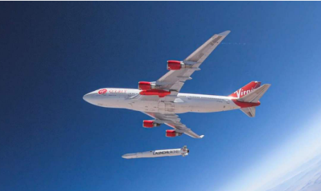 那枚被稱為 LauncherOne 的火箭搭載在一架改裝過的飛機(jī) Cosmic Girl 上。這架波音 747 飛機(jī)負(fù)責(zé)將火箭抬離地面,高度約為 45,000 英尺;然后它從機(jī)翼下方下降,并將衛(wèi)星帶到它們的最終部署位置。