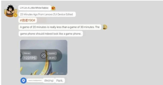 聯想筆記本產品經理林林今天對即將推出的聯想軍團Y90游戲手機進行了調侃,他表示即使以120FPS的速度玩了20分鐘,該設備的溫度仍為38.9°C。