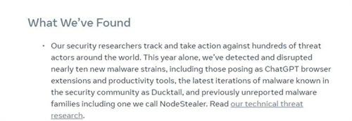 Meta的官方表示這些惡意的軟件發布者,他們往往會抓住當前最熱門的話題,以此來吸引廣大社交平臺網友的注意,最主要的目的就是為了吸引這些用戶點擊他們的下載鏈接,公司現在已經開始大力調查這種行為的出現并采取相關行動,嚴厲制止這些利用ChatGPT的流量和關注度去危害他人權益的行為。