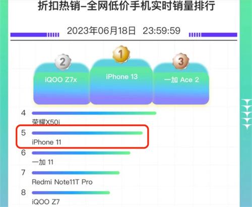 隨著618購物狂歡節大促落幕,各大電商平臺的銷售戰報也已經在社交平臺上面陸續公布,不過今年在手機板塊由于蘋果的入局,讓該板塊的蛋糕被蘋果分走了最大的一塊,蘋果僅在京東平臺的成交額就已經突破了百億元,僅僅iPhone手機這一項業務中就接連斬獲移動手機銷售量排行榜的前幾名,除了近兩年蘋果發布的機型之外,蘋果在四年前發布的iPhone 11竟然在此次618期間擠進了榜單的前五位置,這一消息可以說讓人驚掉了下巴。