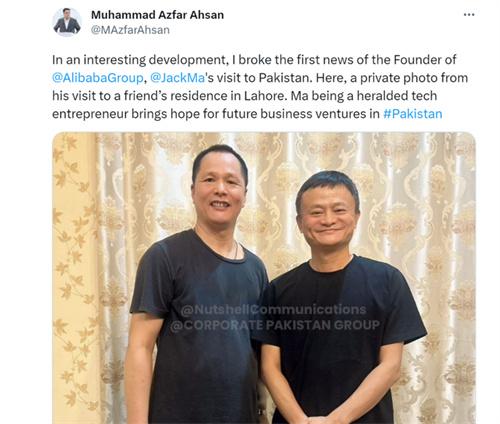 近日,外媒報道,馬云在6月29日抵達巴基斯坦旁遮普省首府拉合爾,并且在當地短暫停留了23小時,根據媒體的報道稱,馬云這次的行動十分低調,在訪問期間,避免與當地政府官員以及媒體發生任何的接觸,除此之外,馬云的陪同人員總共有七名人員組成,其中是包括了五名中國公民,一名丹麥人和一名美國人,根據阿赫桑在社交平臺上的表示來看,馬云的此次出行完全是出于個人目的,或許是想為蔣凡站臺。