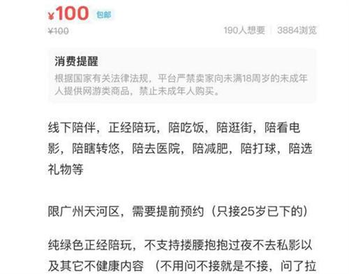 有網(wǎng)友針對這些服務(wù)向閑魚工作人員投訴,該工作人員表示,閑魚上可以出售個人的閑置物品,其中還包括私人時間,比如陪聊和陪玩的服務(wù),如果陪聊的內(nèi)容涉及到情色,那么平臺接收到用戶舉報就會立刻下架該商品。如果沒有人舉報這些服務(wù),那么陪聊的各項(xiàng)服務(wù)都是平臺無權(quán)干預(yù)的,平臺的審核一般也是通過商品的描述以及圖片信息來分辨是否違規(guī)。