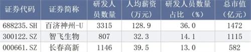 化學(xué)制藥領(lǐng)域,我國企業(yè)已經(jīng)在全球方面占據(jù)了越來越重要的地位,全球權(quán)威醫(yī)藥智庫信息平臺發(fā)布的醫(yī)藥研發(fā)趨勢分析中,恒瑞醫(yī)藥、石藥集團(tuán)以及復(fù)星醫(yī)藥這三家中國化學(xué)制藥企業(yè)已經(jīng)進(jìn)入全球醫(yī)藥企業(yè)研發(fā)產(chǎn)品線規(guī)模的25強名單中。該行業(yè)的前景自然是無需多言的,化學(xué)制藥企業(yè)在未來也需要更多的研發(fā)人員,此次統(tǒng)計的化學(xué)制藥企業(yè)有99家公司。2022年,上述公司的研發(fā)人員總計有6.5萬人,占據(jù)員工比例的14.8%,平均年薪為20.8萬元。