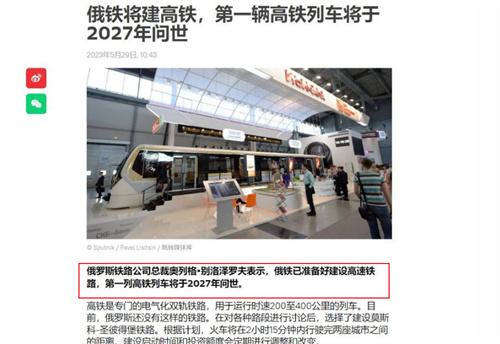 早在今年5月30日,俄羅斯衛星通訊社就在社交媒體上發布了一篇文章,文章中表示俄羅斯將新建高鐵,第一列高鐵列車將會在2027年正式問世。在這篇文章中,作者指出一個慘淡的現實問題,那就是截止到目前,俄羅斯仍舊沒有運行時速能夠達到200到400公里的列車,不過俄羅斯已經在躍躍欲試想要建設高鐵。