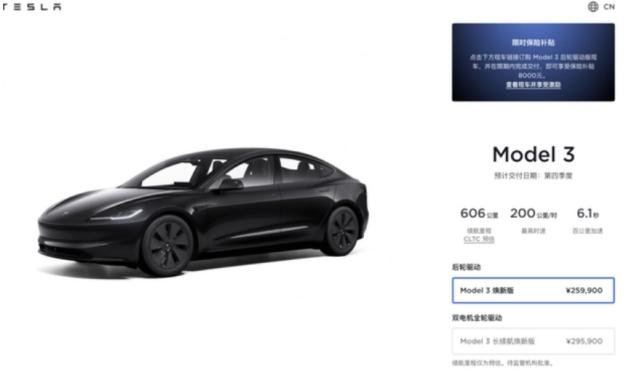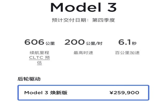 9月1日,特斯拉中國正式宣布新款model 3正式上市,該款車型起售價為259900元,預計將會在今年第四季度正式交付車主,此次新款特斯拉model 3是該系列車型上市以來的第一次改款,Model 3煥新后驅版本售價為25.99萬元,長續航版售價為29.59萬元,起售價與此前相比提高了2.8萬元。