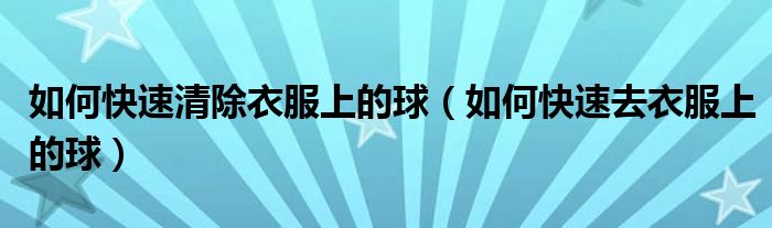 大家好,我是平安財經網編輯小宋。我會為你解答以上問題。最近看到網友在搜索如何快速去衣服上的球,的信息,于是小宋編了一個關于如何快速去衣服上的球大家一起來看看吧。