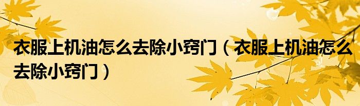 大家好,我是平安財經網編輯小宋。我會為你解答以上問題。最近看到網友在搜索衣服上機油怎么去除小竅門,的信息,于是小宋編了一個關于衣服上機油怎么去除小竅門大家一起來看看吧。