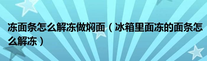 大家好,我是平安財經網編輯小宋。我會為你解答以上問題。最近看到網友在搜索冰箱里面凍的面條怎么解凍,的信息,于是小宋編了一個關于冰箱里面凍的面條怎么解凍大家一起來看看吧。