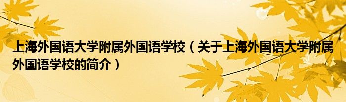 本文關于上海外國語大學附屬外國語學校的簡介就講解完畢,希望對大家有所幫助。