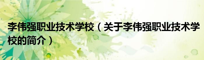 本文關于李偉強職業技術學校的簡介就講解完畢,希望對大家有所幫助。