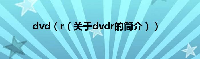 本文關于dvd r的簡介就講解完畢,希望對大家有所幫助。