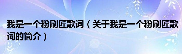 本文關(guān)于我是一個(gè)粉刷匠歌詞的簡(jiǎn)介就講解完畢,希望對(duì)大家有所幫助。