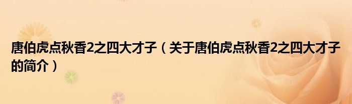 本文關(guān)于唐伯虎點秋香2之四大才子的簡介就講解完畢,希望對大家有所幫助。