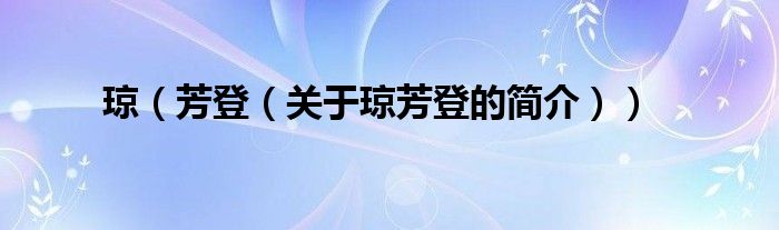 大家好,瓊 芳登,關于瓊 芳登的簡介很多人還不知道,現在讓我們一起來看看吧!