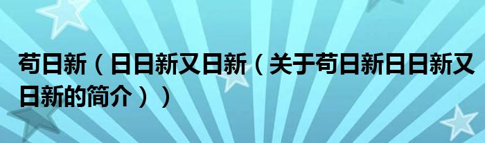 大家好,茍日新 日日新 又日新,關(guān)于茍日新 日日新 又日新的簡介很多人還不知道,現(xiàn)在讓我們一起來看看吧!