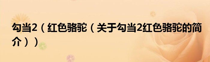 大家好,勾當2 紅色駱駝,關于勾當2 紅色駱駝的簡介很多人還不知道,現在讓我們一起來看看吧!