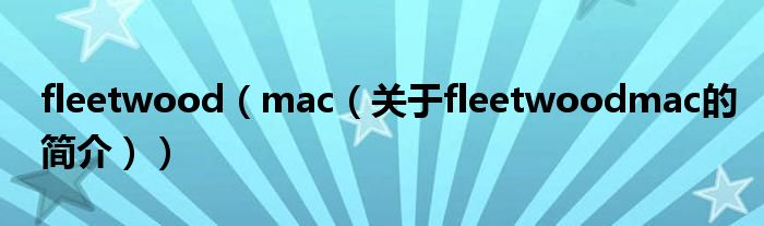 大家好,fleetwood mac,關于fleetwood mac的簡介很多人還不知道,現在讓我們一起來看看吧!