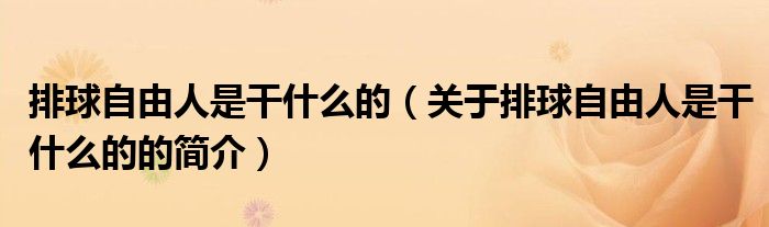 本文關于排球自由人是干什么的的簡介就講解完畢,希望對大家有所幫助。