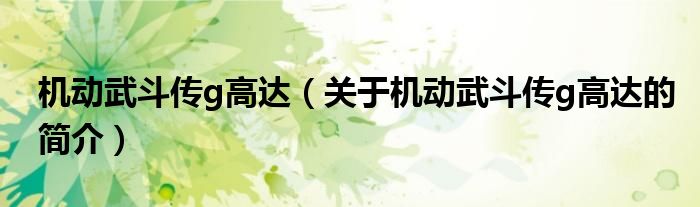 本文關于機動武斗傳g高達的簡介就講解完畢,希望對大家有所幫助。