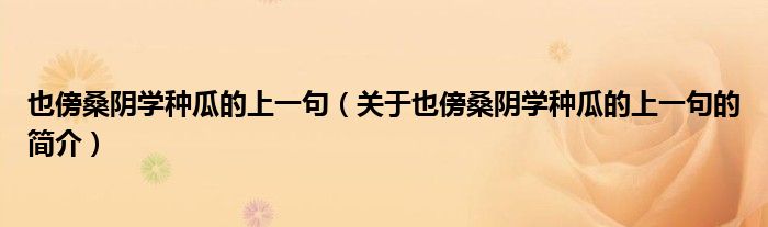 本文關于也傍桑陰學種瓜的上一句的簡介就講解完畢,希望對大家有所幫助。