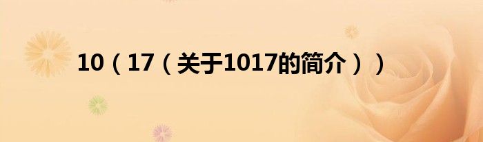 大家好,10 17,關于10 17的簡介很多人還不知道,現在讓我們一起來看看吧!