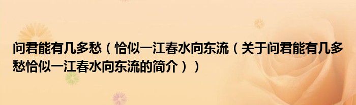 大家好,問君能有幾多愁 恰似一江春水向東流,關(guān)于問君能有幾多愁 恰似一江春水向東流的簡介很多人還不知道,現(xiàn)在讓我們一起來看看吧!
