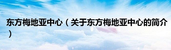 大家好,東方梅地亞中心,關于東方梅地亞中心的簡介很多人還不知道,現在讓我們一起來看看吧!