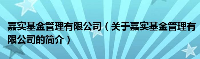 本文關(guān)于嘉實(shí)基金管理有限公司的簡(jiǎn)介就講解完畢,希望對(duì)大家有所幫助。