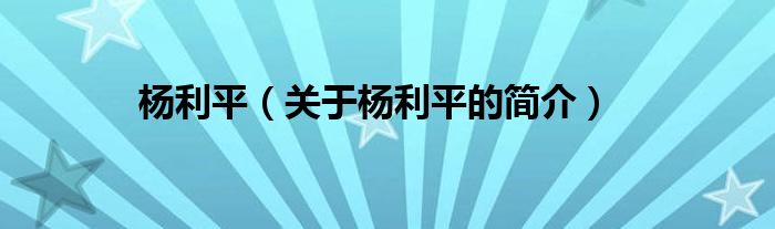 本文關于楊利平的簡介就講解完畢,希望對大家有所幫助。