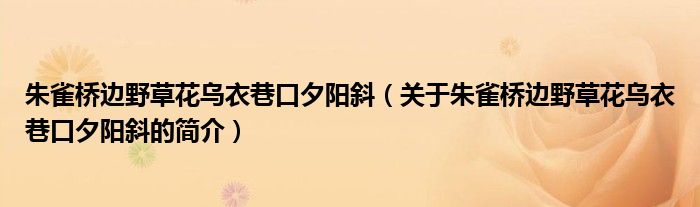 本文關于朱雀橋邊野草花烏衣巷口夕陽斜的簡介就講解完畢,希望對大家有所幫助。