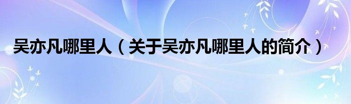 大家好,吳亦凡哪里人,關于吳亦凡哪里人的簡介很多人還不知道,現在讓我們一起來看看吧!