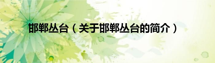 本文關于邯鄲叢臺的簡介就講解完畢,希望對大家有所幫助。